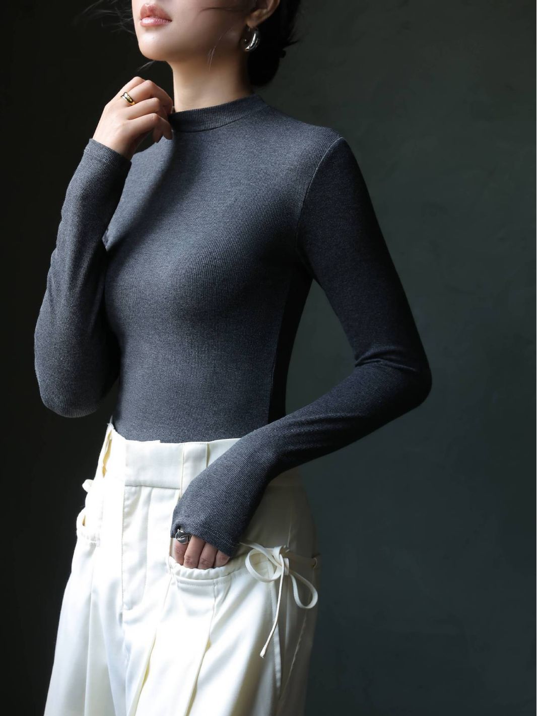 2024 جديد مشروط قاعدة قميص المرأة الخريف سليم صالح التخسيس الداخلية نصف عالية الرقبة قاعدة تي شيرت رقيقة طويلة الأكمام