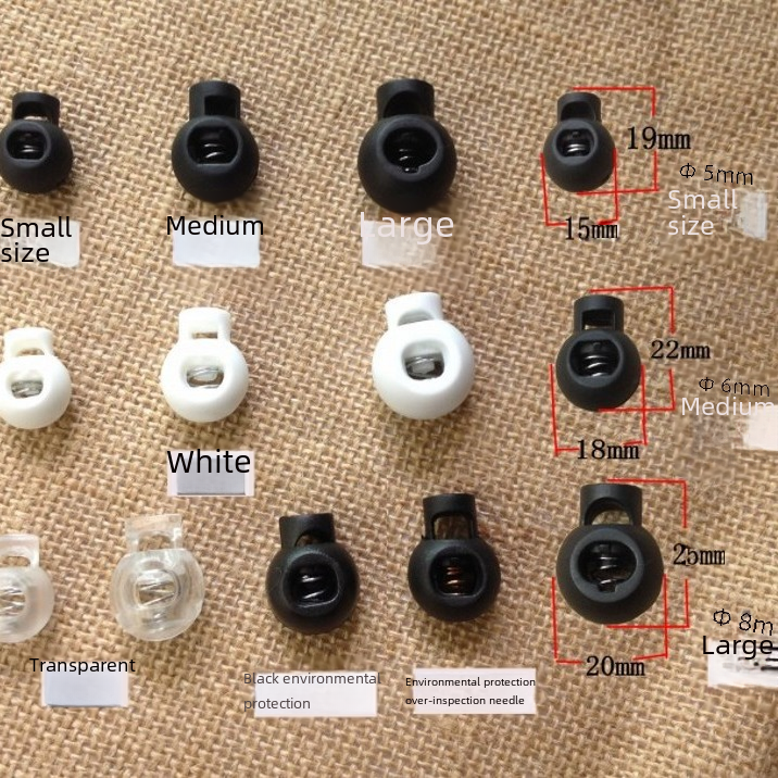 توريد مشبك زنبركي من البلاستيك، مشبك زنبركي كروي، كرة مستديرة، فتحة واحدة، غطاء شعاع، إبزيم حبلي، مشبك زنبركي شفاف أبيض وأسود