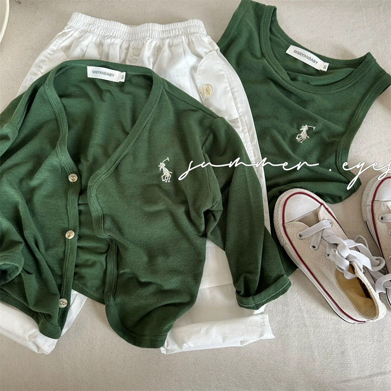 بدلة واقي من أشعة الشمس للأطفال نقي اللون 2024 الصيف الجديد للأطفال -غلاف مكيف+سترة الرجال والفتيات ناعمة ~