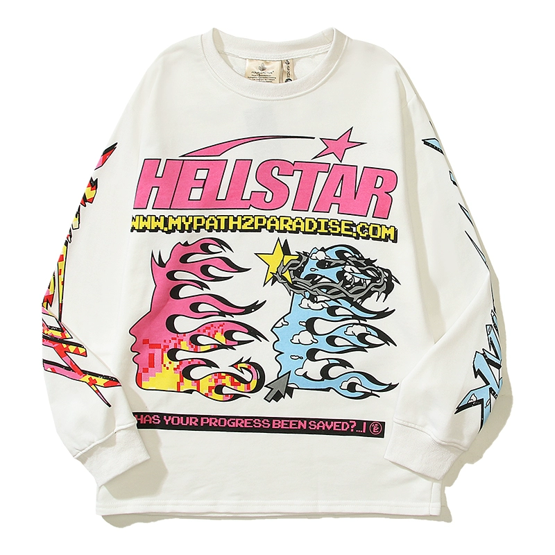 الأمريكية المتخصصة الجحيم هاي ستريت الهيب هوب الذكور والإناث زوجين ins الجانب طباعة VTG الرجعية طويلة الأكمام تي شيرت البلوز العصرية