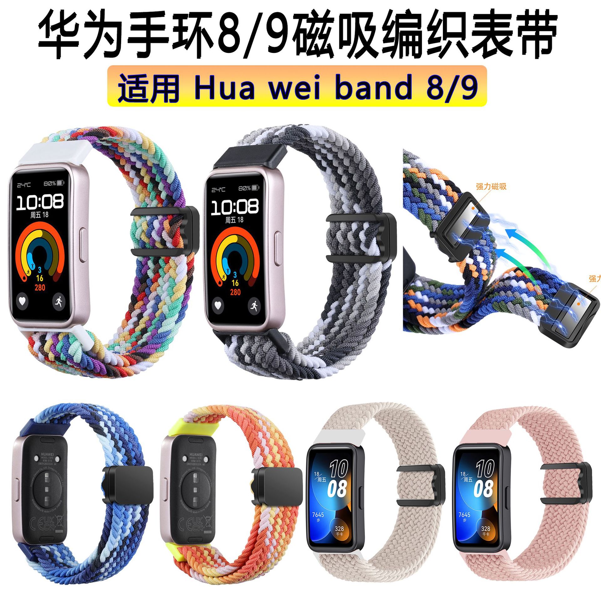 مناسب لسوار هواوي باند 789، حزام مغناطيسي مجدول من النايلون قابل للتعديل، سوار هواوي 9 حزام