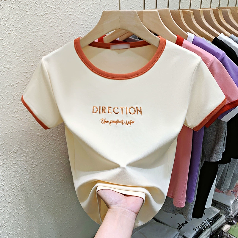 الإيجابية الكتف الإضافية الصيف slimfiner التطريز قصير t -sleeved t -shirt