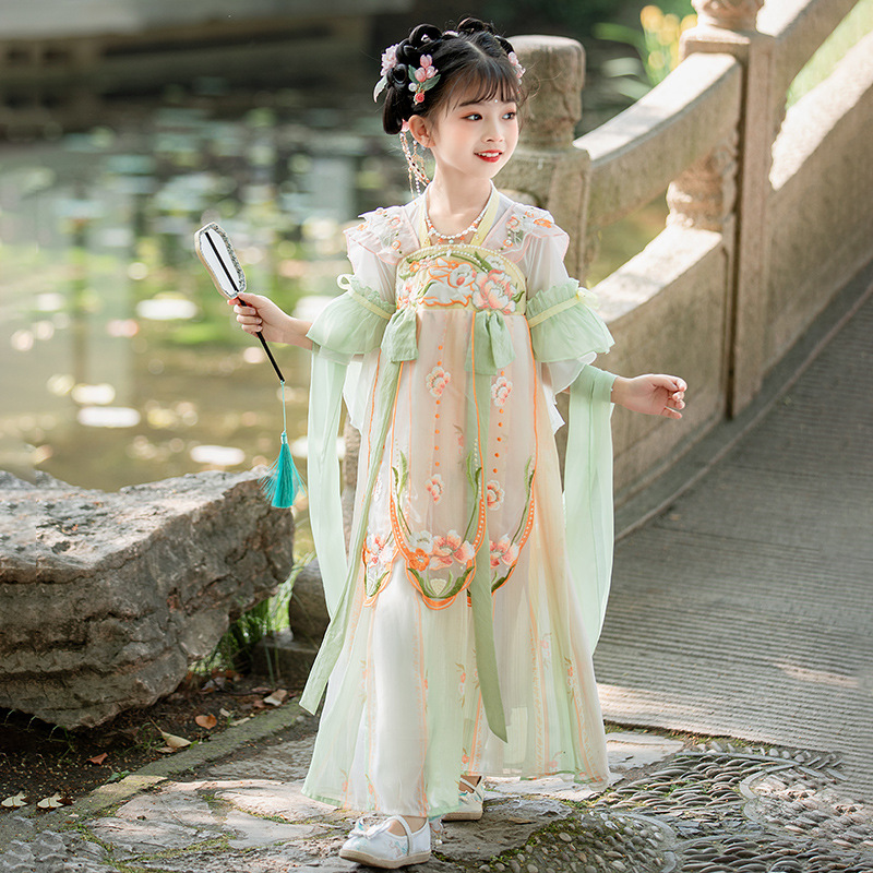 Hanfu Girl’s New Summer Style رقيقة الفتاة العتيقة نمط سوبر الجنية فستان سونغ الأميرة فستان الأطفال تانغ دعوى للنساء الصيف