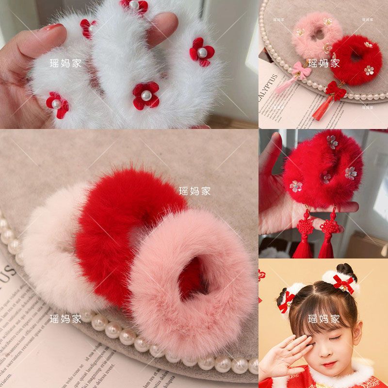 10/50/100 حزمة تقليد المنك أفخم الشعر الدائري السنة الجديدة النمط الصيني الكرة رئيس السنة الجديدة تحية حبل الشعر الملحقات