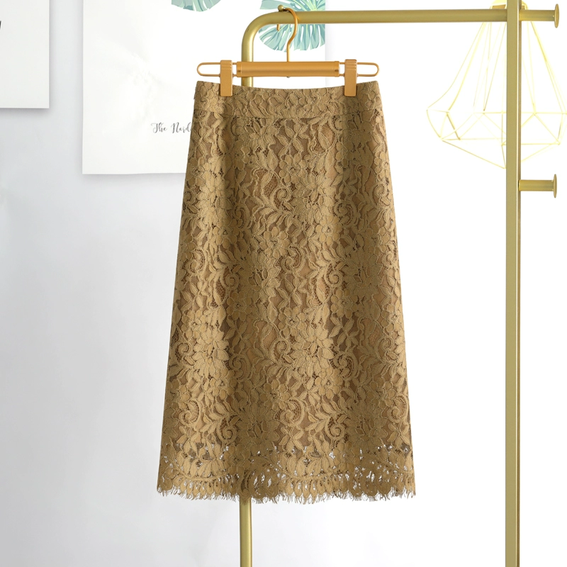 الدانتيل الكاكي ذو اللون رفيع ومغطى بتنورة إحساس تصميم اللحم