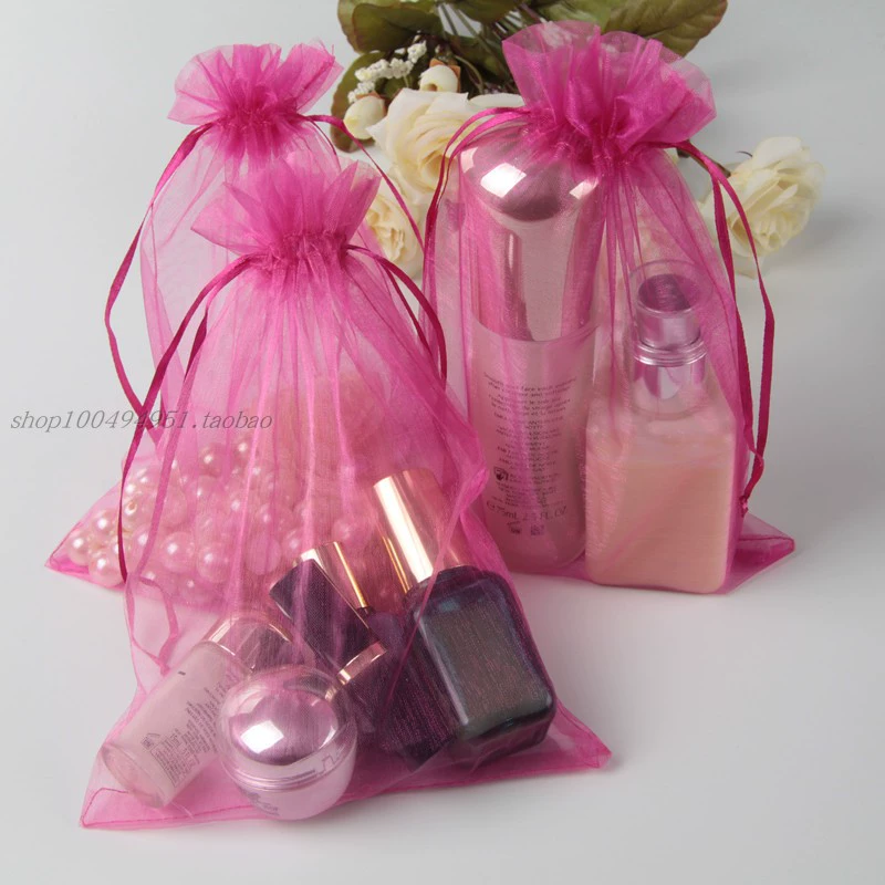 وردة اللون الأحمر الصلب شيفون مستحضرات تجميل لؤلؤة مرحبا كيس خيوط البيض