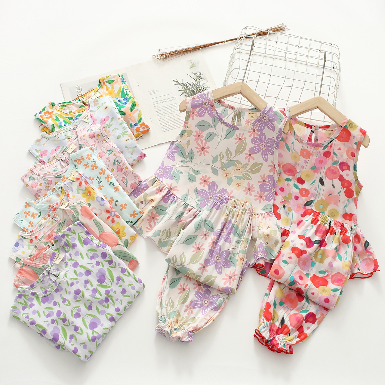 بدلة صيفية رائعة للأطفال سترة قصيرة بيجامة قطنية قطنية صناعية للبنات بدون أكمام ملابس منزلية جيل من الشعر