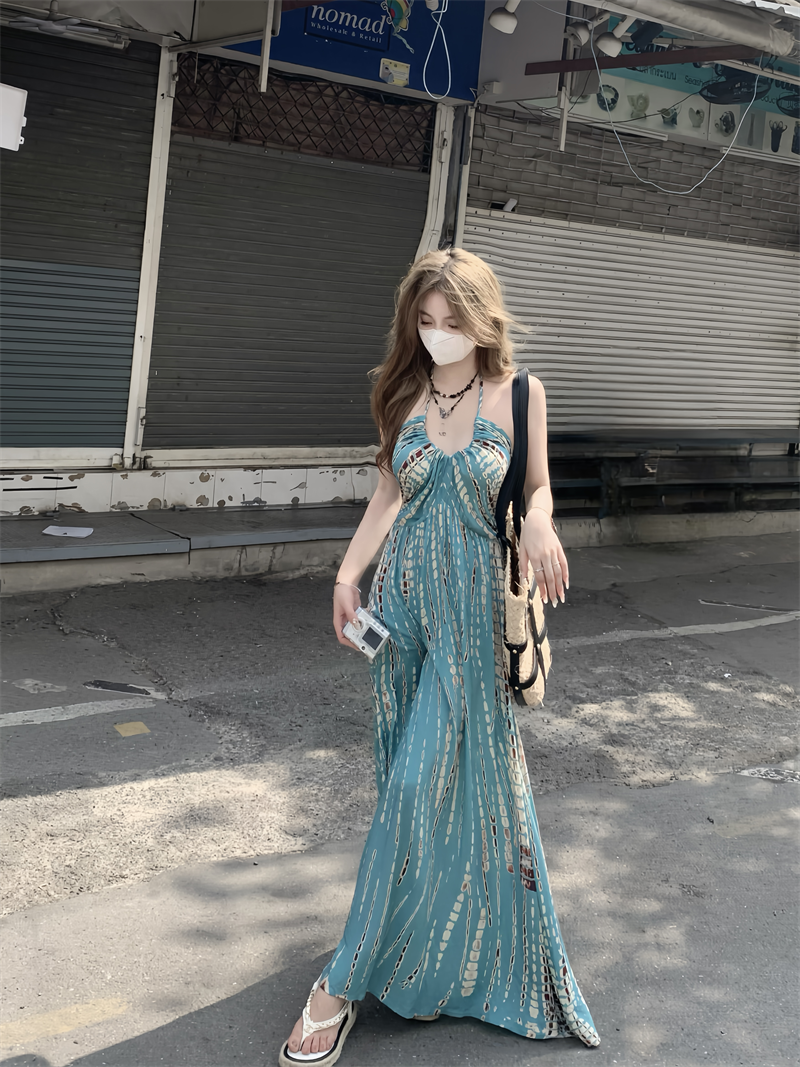 فستان ريترو بدون ظهر صيفي كاجوال برقبة رسن متخصصة