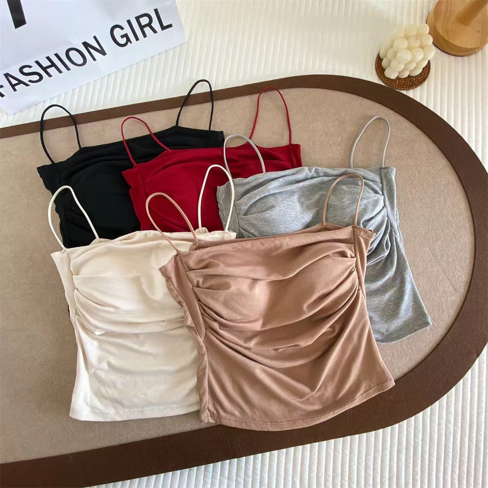 قميص قصير من القطن للربيع والصيف بدون أكمام قاعدة ملابس داخلية لباس خارجي ضيق مناسب للتنحيف وسادة الصدر فتاة التوابل الحلوة النقية