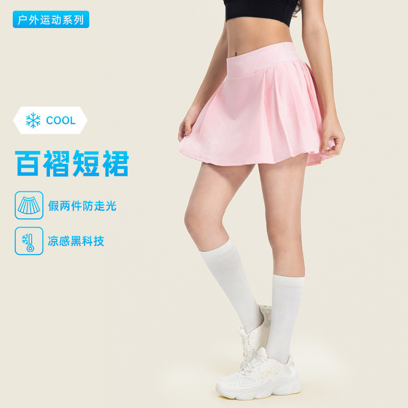 تنورة قصيرة جديدة لليوجا بطيات طويلة الساق من Luxtre تنورة رياضية مزيفة مكونة من قطعتين مضادة للتعرض وتبريد المياه