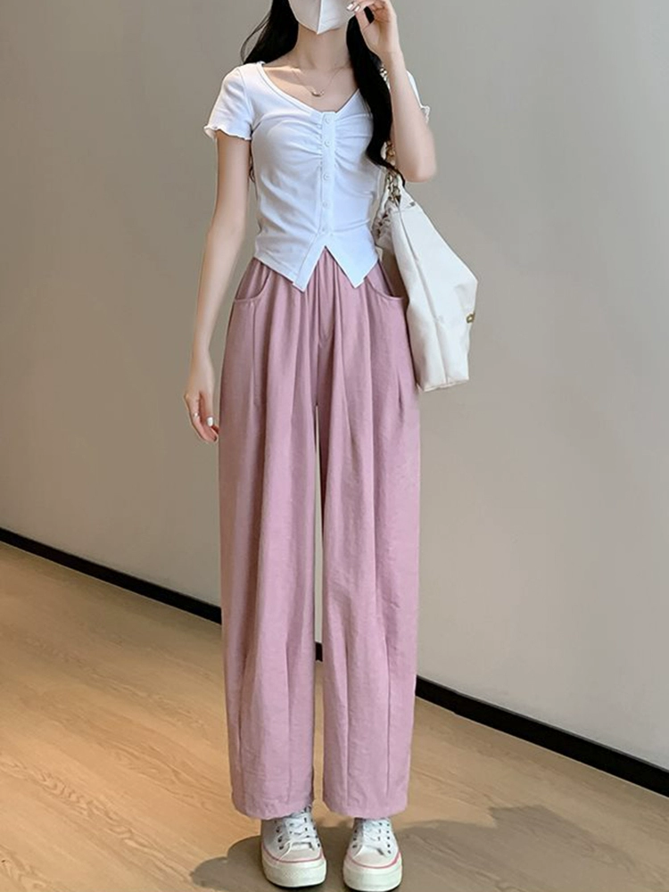 بنطال فضفاض عالي الخصر بتسع نقاط، مصنوع من الأسيتات باللون الأبيض الحليبي