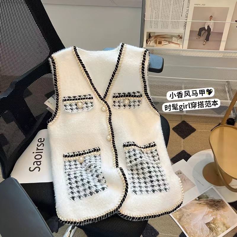 شانيل نمط محبوك سترة المرأة تقليد المنك المخملية 2024 الخريف جديد الخامس الرقبة سترة واحدة الصدر سترة سترة