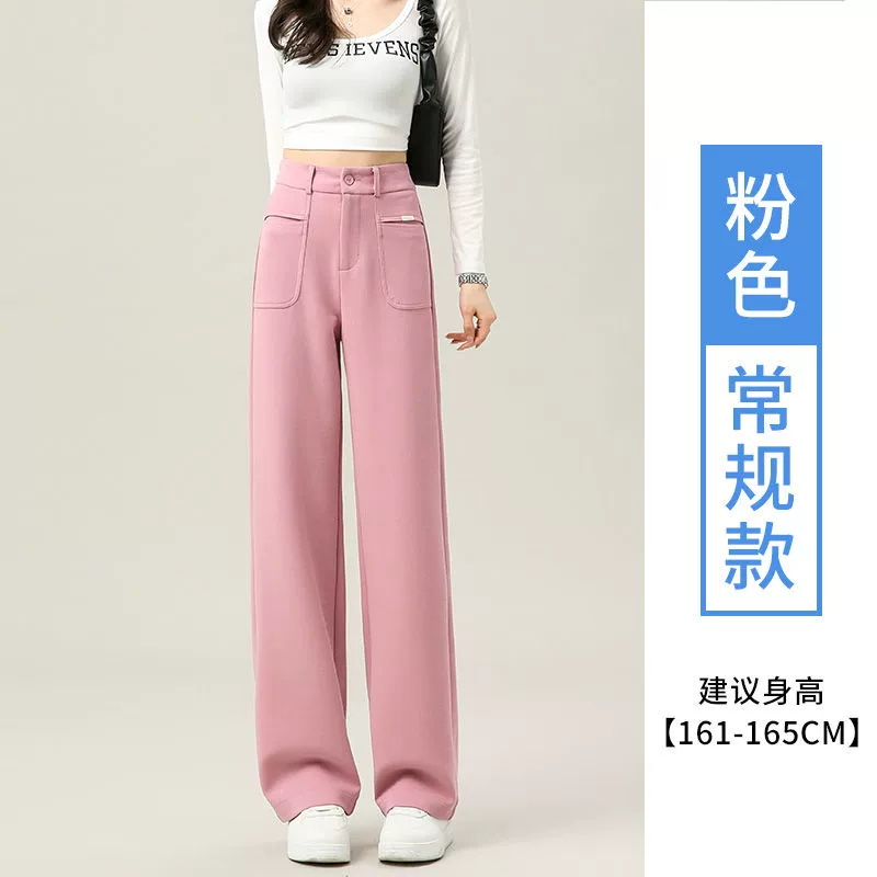 نسخة ضيقة للربيع والخريف بنطال واسع الساق فضفاض غير رسمي ناعم شمعي عالي الخصر