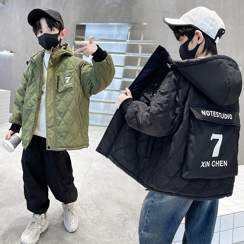 2023 ملابس الأطفال جديد الأولاد ملابس منقوشة بكم طويل القطن مبطن سترة واقية معطف الأطفال الرياضية مقنعين معطف دافئ