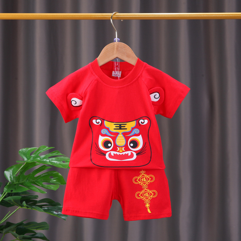 ملابس الصيف للأولاد على الطراز الغربي بدلة تانغ بأكمام قصيرة فستان عيد ميلاد للأطفال بعمر عام واحد طقم أطفال على الطراز الصيني القديم للأطفال