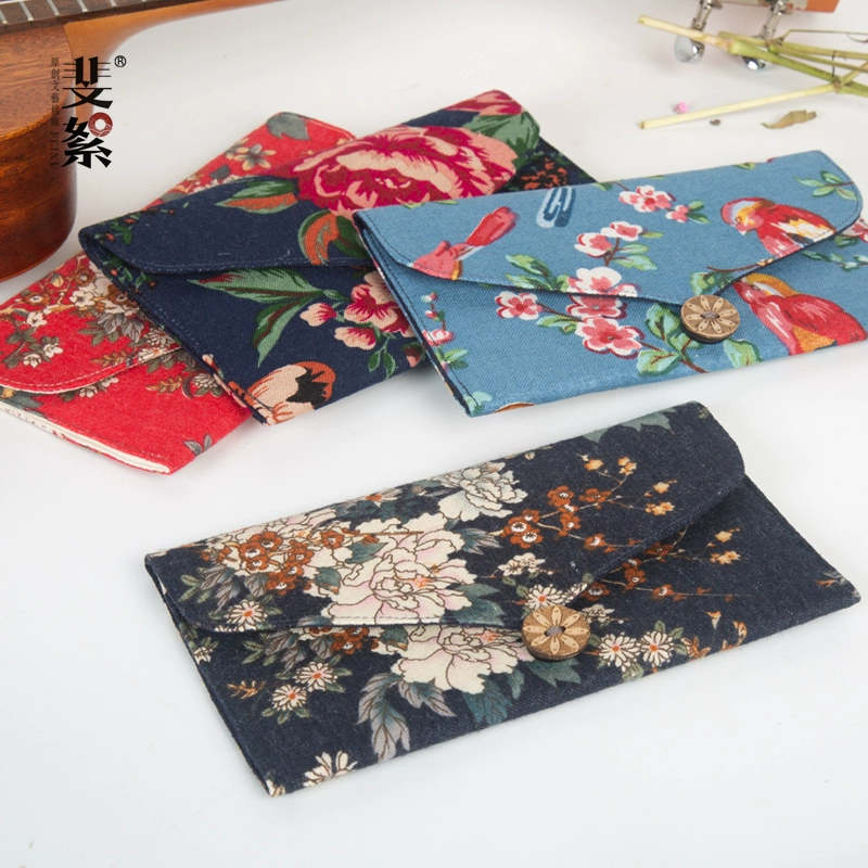 حقيبة هاتف محمول أصلية جديدة من القطن والكتان من Feixu محفظة طويلة مطبوعة وحقيبة صغيرة طازجة وحقيبة تخزين للشباب
