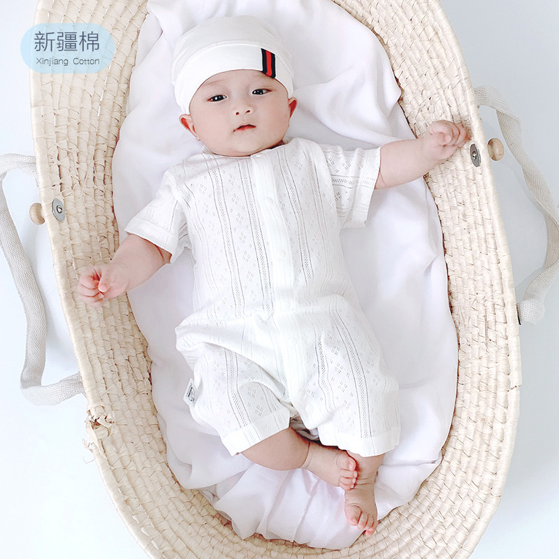 ملابس تسلق صيفية رفيعة من القطن الخالص للأطفال قميص هاسارد يسمح بمرور الهواء للأطفال الصغار ملابس تكييف الهواء بأكمام قصيرة بيجامات لحديثي الولادة