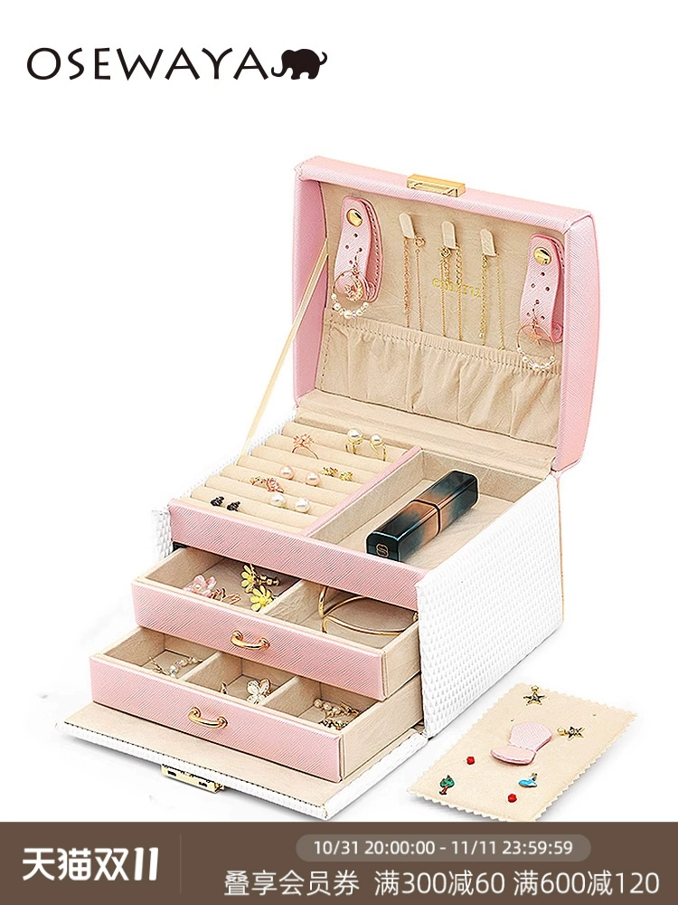 صندوق مجوهرات osewaya ذو قفل عالي الجودة متعدد الطبقات وقلادات مجوهرات ذات سعة كبيرة لتخزين هدايا الزفاف في الأذن
