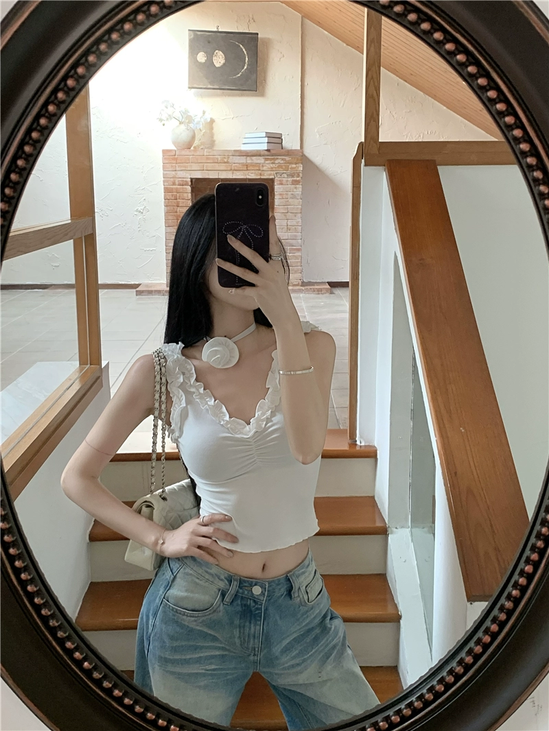 حزام رقبة على شكل حرف V مثير بحواف فطرية ضيقة ومزخرف بالزهور