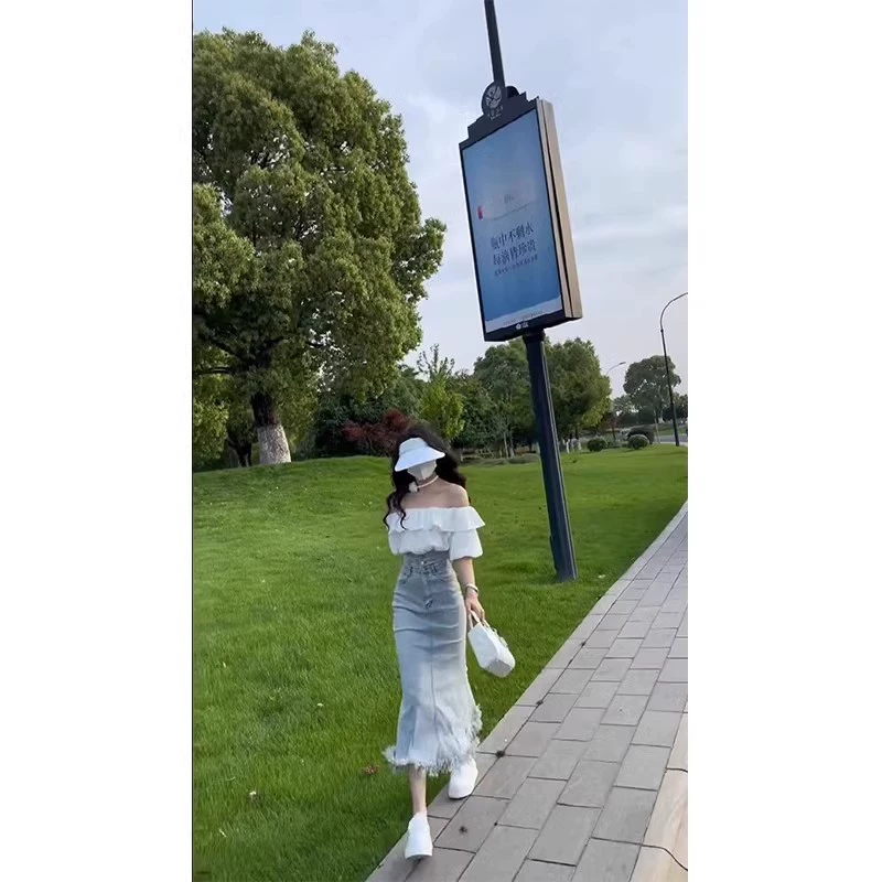 ضوء صغير -تسيطر في أوائل الربيع ، تنورة الدنيم ، تنورة الدنيم