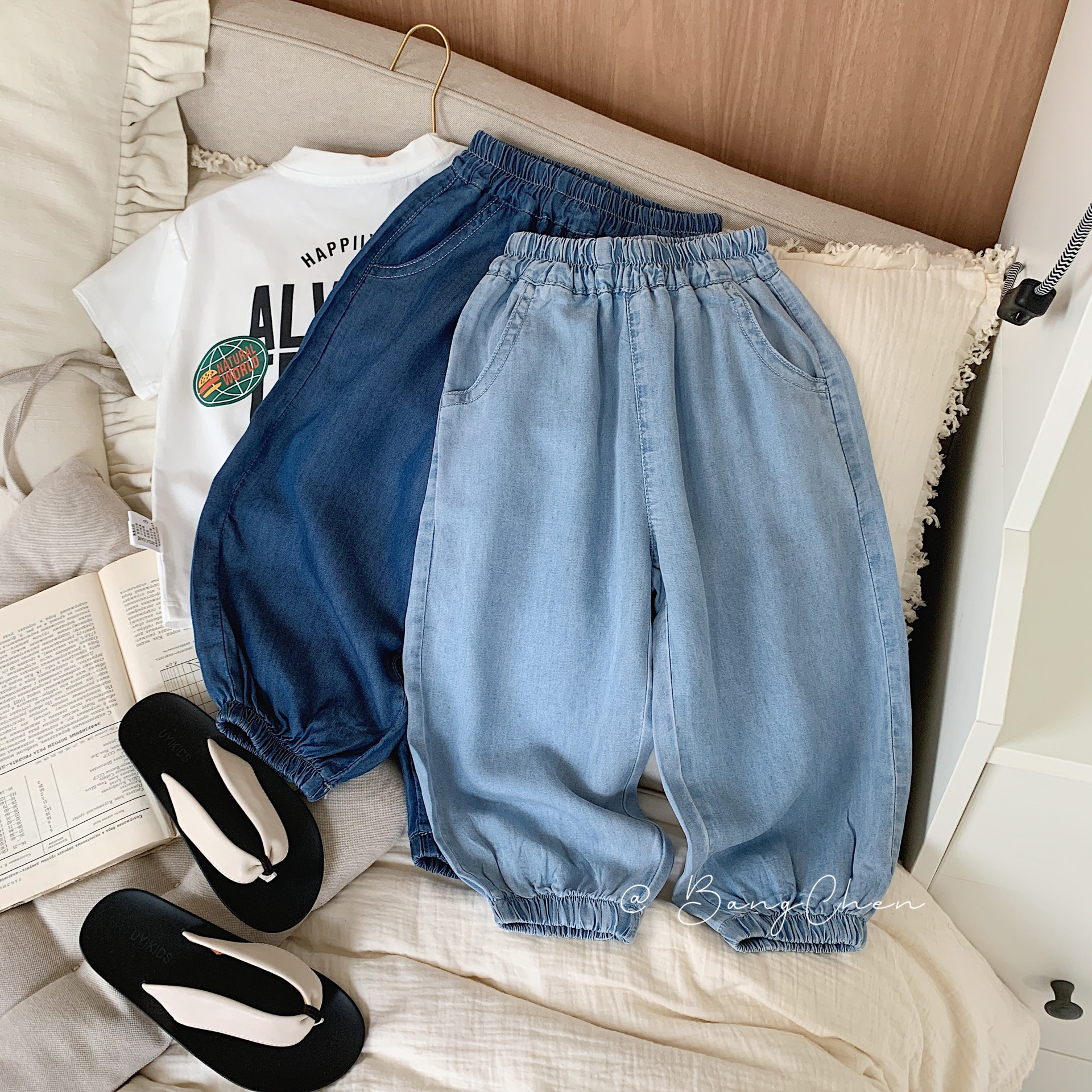 الأطفال الجينز 2024 الصيف الكورية جديد وصول ثوب أطفال للبنين والبنات النمط الغربي بلون ايوسل سراويل تقليدية رقيقة