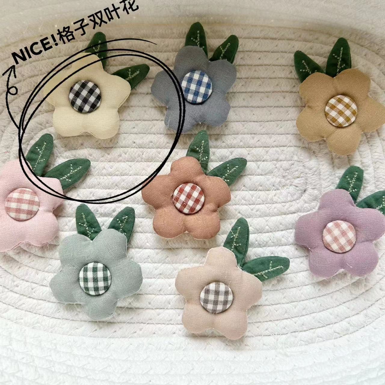 بروش قطن كتان جديد منقوش بخمس بتلات بالإضافة إلى إكسسوارات ملابس زهرة مزدوجة الأوراق من المصنع مباشرة لطيف
