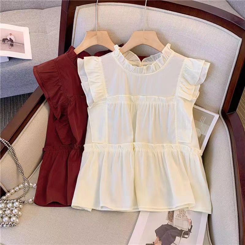 الصيف قصيرة الأكمام القطن الخالص الأبيض النمط الغربي رقيقة فتاة الأطفال أعلى قميص قميص دمية قميص ملابس الأطفال بلا أكمام