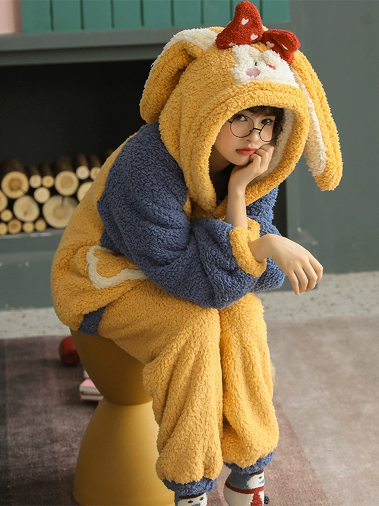 بيجامة مخملية مرجانية نسائية شتوية سميكة ومخملية النسخة الكورية من مجموعة ملابس منزلية لطيفة شبكية حمراء لربيع الخريف والشتاء