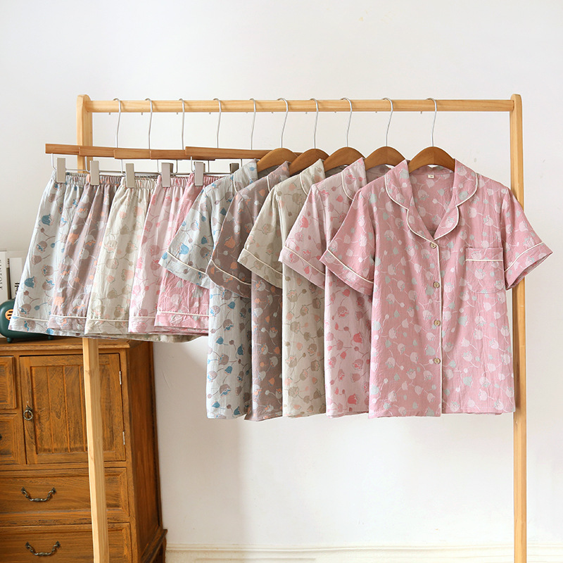 23 شورت صيفي جديد عتيق من قماش الجاكار المصبوغ بأكمام قصيرة ملابس نسائية بطية صدر السترة ملابس منزلية