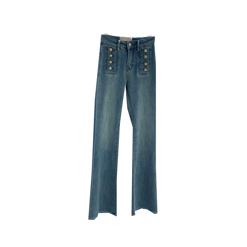 جينز ضيق عالي الخصر ومقاوم للتجاعيد ومغسول ومزدوج الصدر