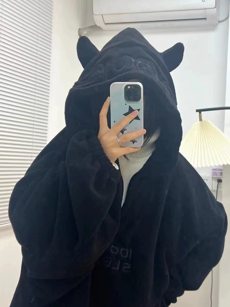 الشيطان الصغير ملابس منزلية مخملية سميكة للخريف والشتاء للرجال والنساء بيجامة قطعة واحدة مطرزة للأزواج وبلوزات حرارية وبيجامات