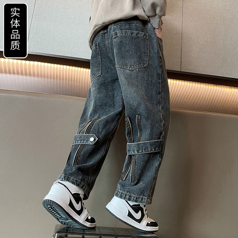 ملابس أطفال بنين جينز سروال ربيع وخريف 2024 نمط جديد كبير للأطفال الجراء وسيم مستقيم عصري ريترو عصري بنطلون