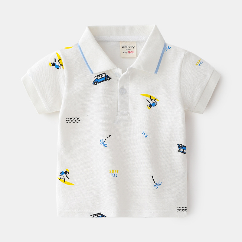 بقعة ملابس الأطفال بالجملة الأولاد قميص بولو قصيرة الأكمام تي شيرت طفل أبيض مطبوع أعلى الأطفال طية صدر السترة الصيف المد