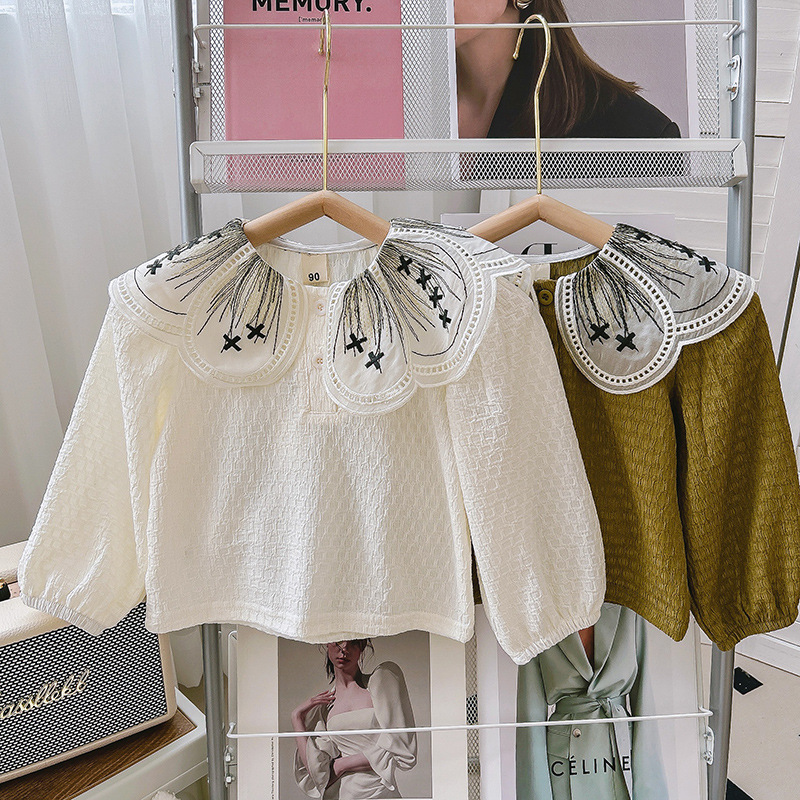 الفتيات الدانتيل طوق قميص طويل الأكمام الربيع والخريف جديد مطرز طوق البتلة أعلى GC0302
