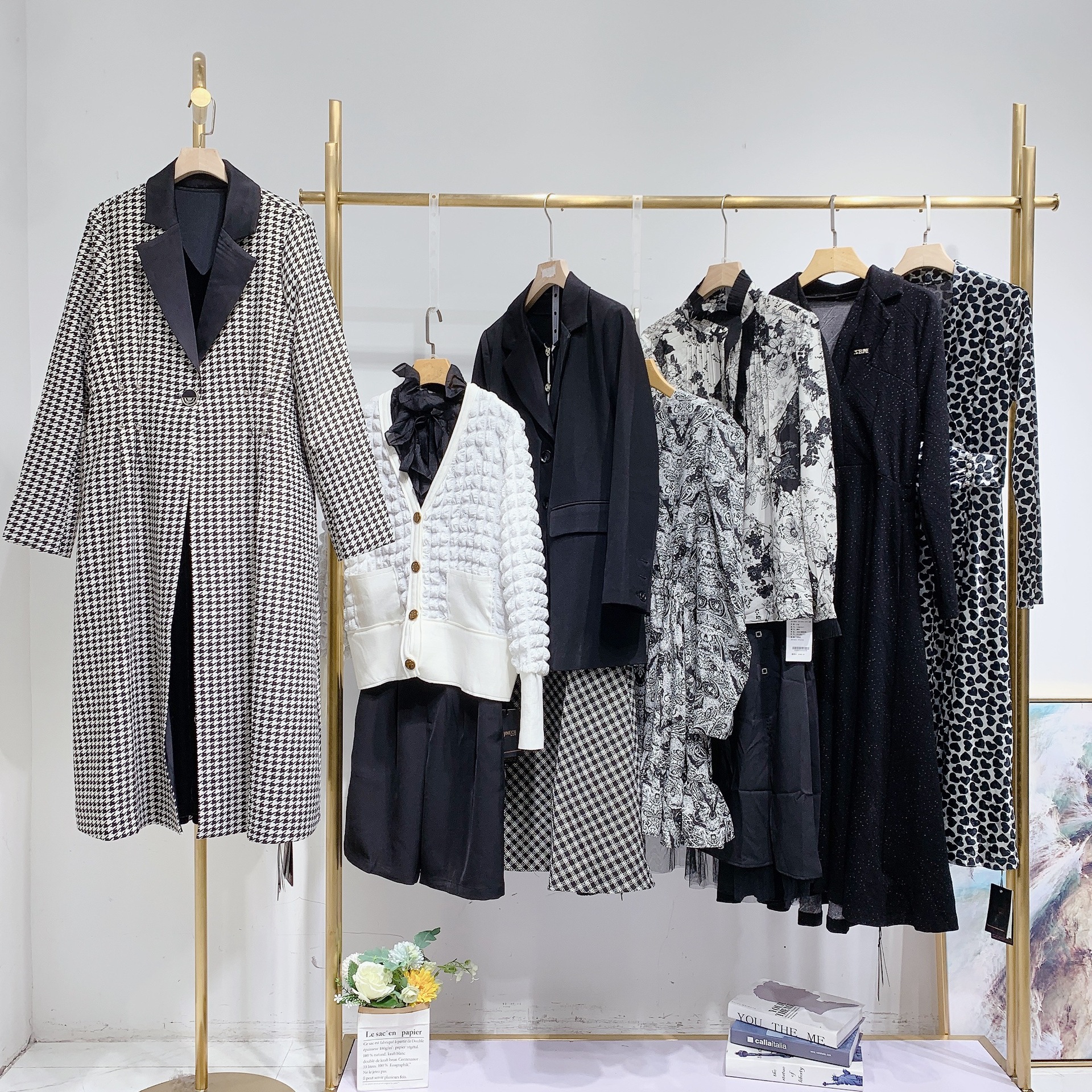 خصم كبير على الملابس النسائية بالجملة، عداد يسحب فستانًا متنوعًا، قطع التخليص، الملصق
