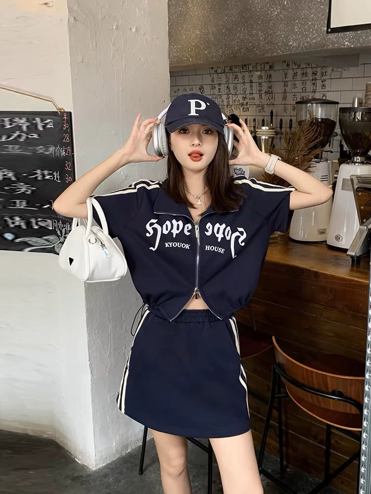 الرياضة العصرية والتنورة الزرقاء غير الرسمية مجموعة من قطعتين