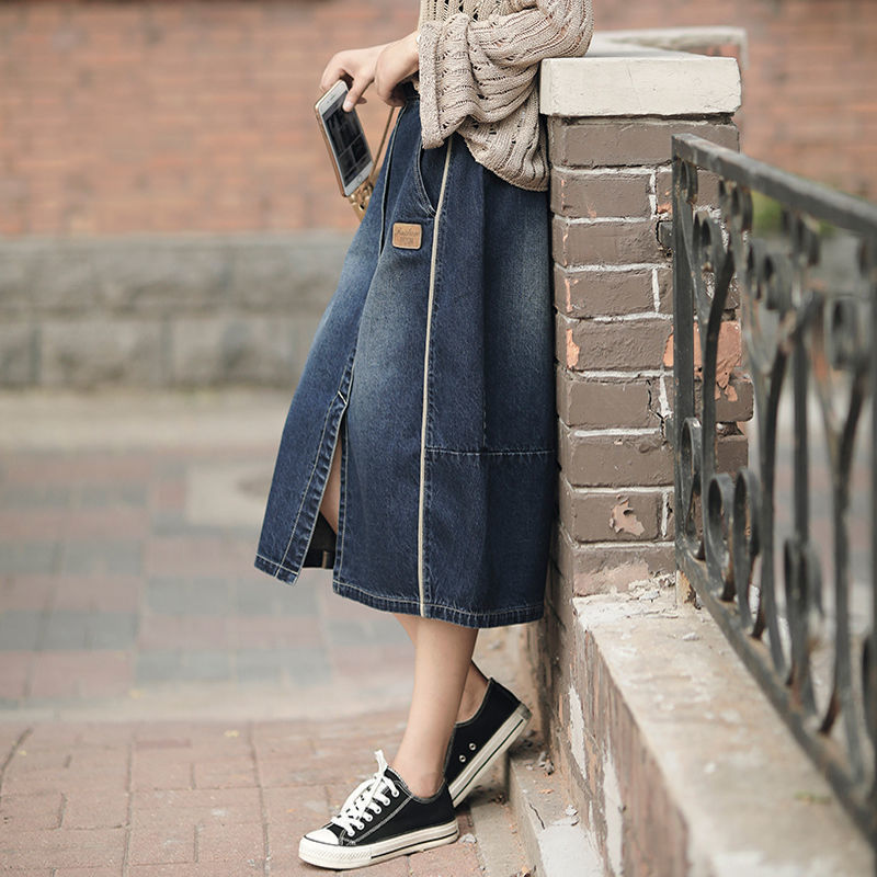 تنورة الدنيم للأطفال 2023 الربيع والخريف جديد ريترو بسيط الجانب الشق منتصف تنورة التخسيس كل مباراة الفنية نصف تنورة