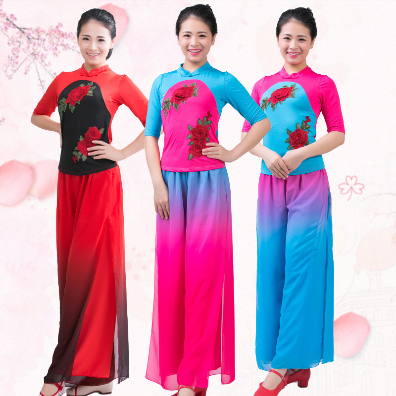جديد خريف 2019 بدلة رقص مربعة بأكمام طويلة من Yunshang ملابس أداء يانغكو ملابس رقص عرقية متدرجة D69
