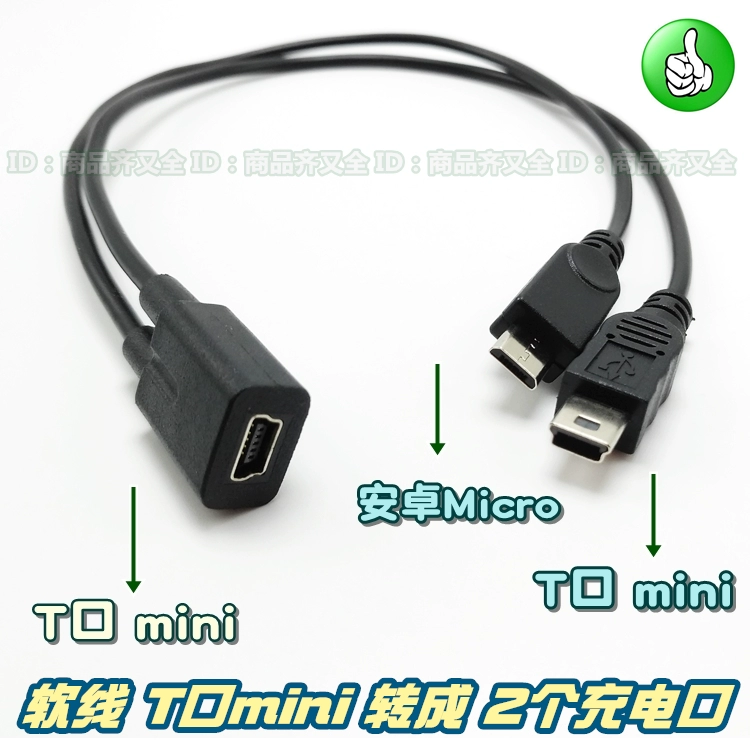 نقل أم USB صغير على شكل حرف T إلى منفذ Android T MINI رأس مزدوج ذكر وأم واحدة وكابلين شحن ذكرين دقيقة واحدة ورأسين