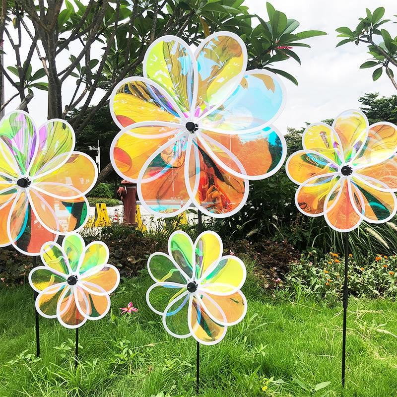 طاحونة هوائية للأطفال في الهواء الطلق شفافة ملونة مكونة من ثماني أوراق فيلا عقارية ذات مناظر طبيعية خلابة دعائم رقص رياضية لرياض الأطفال