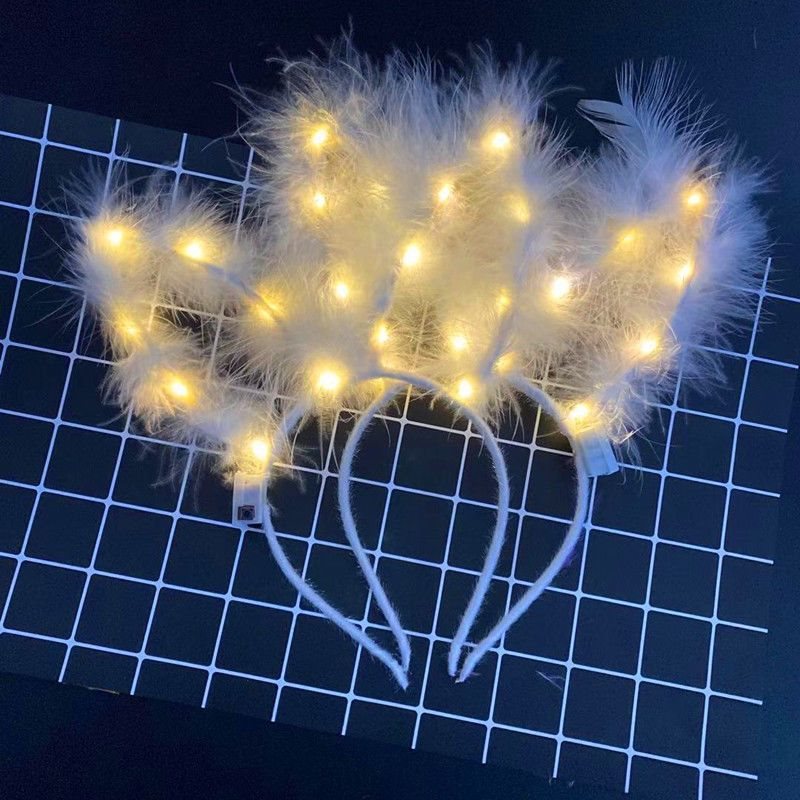 كشك ألعاب صغيرة جديدة مضيئة 14 مصباح آذان أرنب ريشة أداء مساء غطاء الرأس ذات المناظر الخلابة بقعة كشك بالجملة