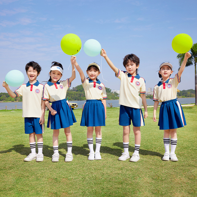 ملابس حديقة رياض الأطفال ملابس الصيف فئة كبيرة التخرج صور المدرسة الابتدائية موحدة الصيف قصيرة الأكمام ملابس الأداء دعوى ملابس الطبقة
