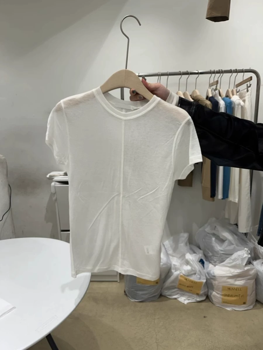 تي شيرت Dongdaemun صيفي بلون سادة ورقبة دائرية وأكمام قصيرة