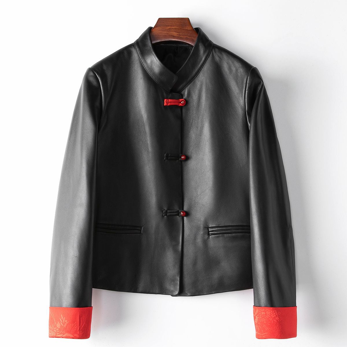 كمية صغيرة من الملابس 2024 ربيع جديد جلد الغنم خياطة التوت الحرير جديد الصينية الوقوف طوق معطف جلد النساء