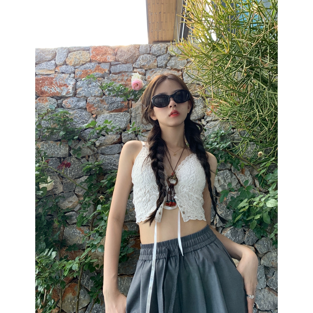 فتاة ساخنة ترتدي دانتيل مثير خالص في حزام الحمالة الأبيض