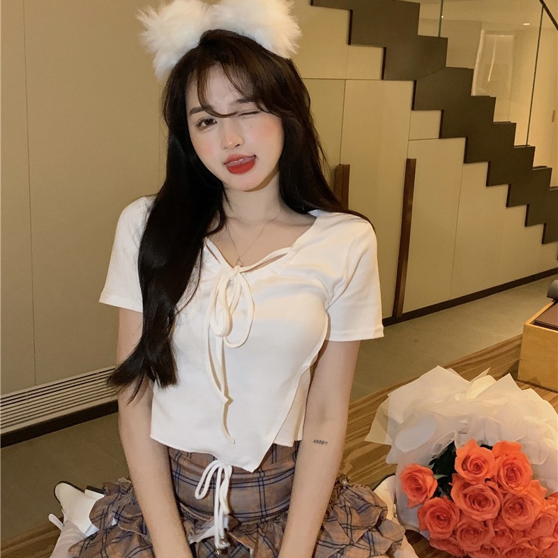 تي شيرت نسائي قصير الأكمام غير منتظم من القطن الخالص 95 لصيف 2022 على الطراز الكوري على Instagram مشهور عالي الخصر قصير السرة سبايس بنات تي شيرت
