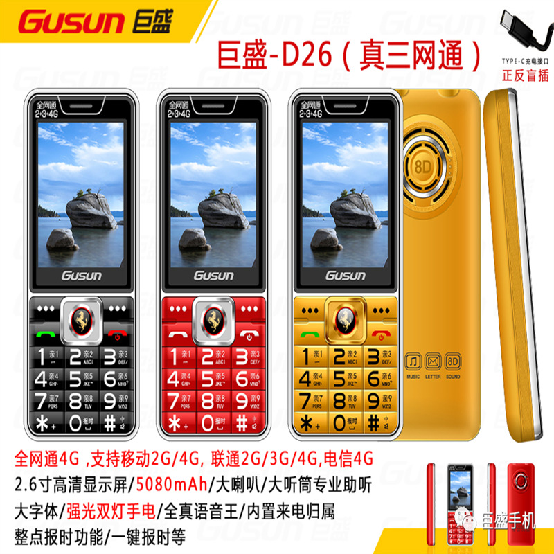 Jusheng D26 Three Netcom 4G المسنين الهاتف المحمول بطارية كبيرة وظيفة رئيسية آلة موبايل يونيكوم تيليكوم 4G المسنين