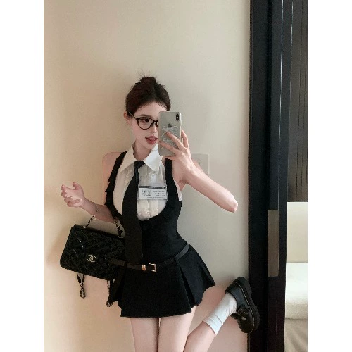 بدلة على طراز الكلية قميص بدون أكمام وتنورة على شكل حرف A