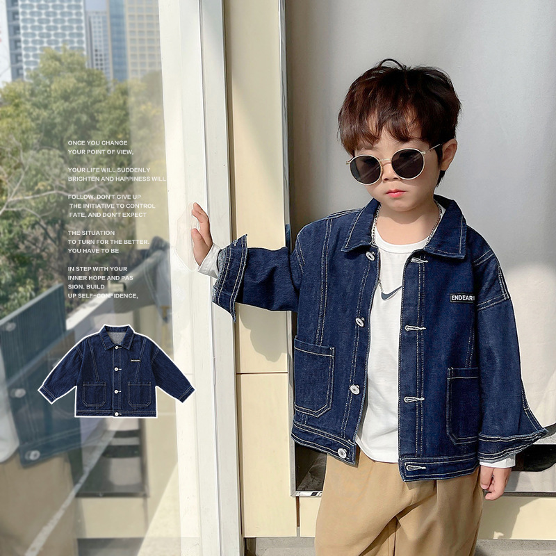 معطف للأولاد من قماش الدنيم للربيع والخريف ملابس أطفال للأطفال معطف على الطراز الغربي ماركة أزياء الشارع المقلي X3710