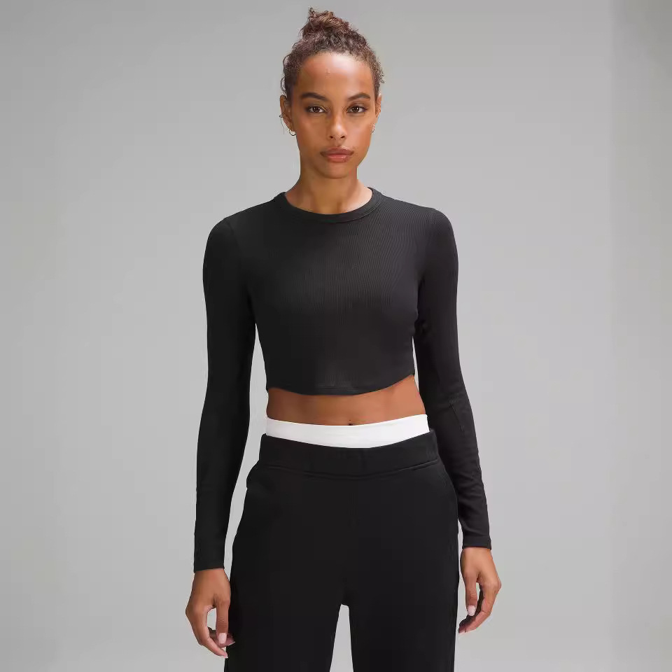 مشروط تي شيرت 2024 الربيع والصيف المرأة قميص قصير الرقبة المستديرة سليم صالح عادية اليوغا عالية المرونة طويلة الأكمام قاعدة قميص
